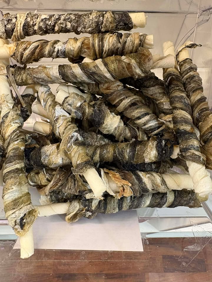 • Ingrédients de qualité : Fabriqué avec 30% de poisson et 65% de peau de bœuf, il offre une texture irrésistible et une source de protéines essentielles.
