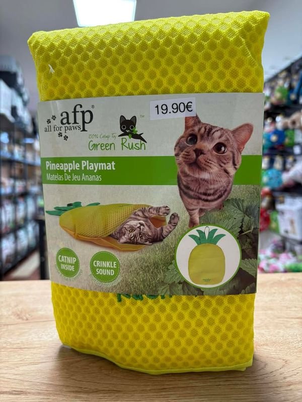 Offrez à votre chat un espace de détente aussi amusant qu'apaisant avec le Pineapple Playmat de la gamme Green Rush. Ce tapis de jeu en forme d'ananas géant est l'accessoire parfait pour les chats qui aiment se cacher, se rouler et s'amuser dans un confort total.