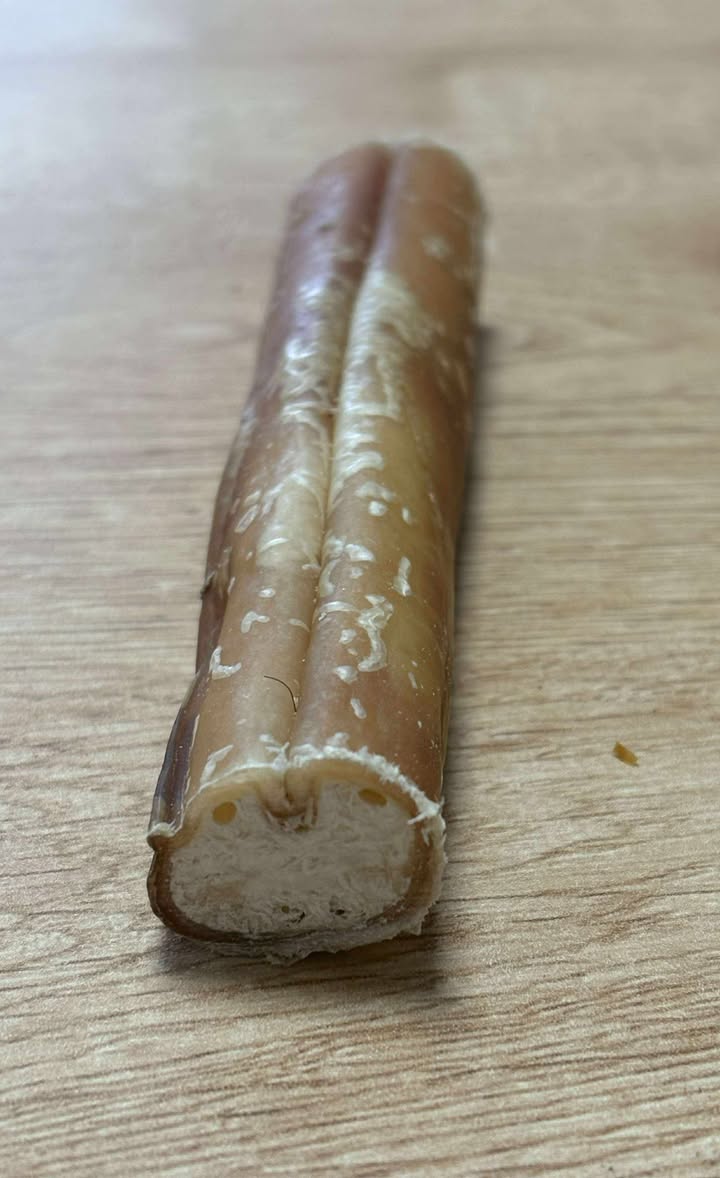 - Totalement digestible : Contrairement à certains os qui peuvent se briser ou être difficiles à digérer, le nerf de bœuf se ramollit progressivement avec la salive et la mastication, le rendant entièrement digestible. Cela minimise les risques de blocages ou d'irritations gastro-intestinales.