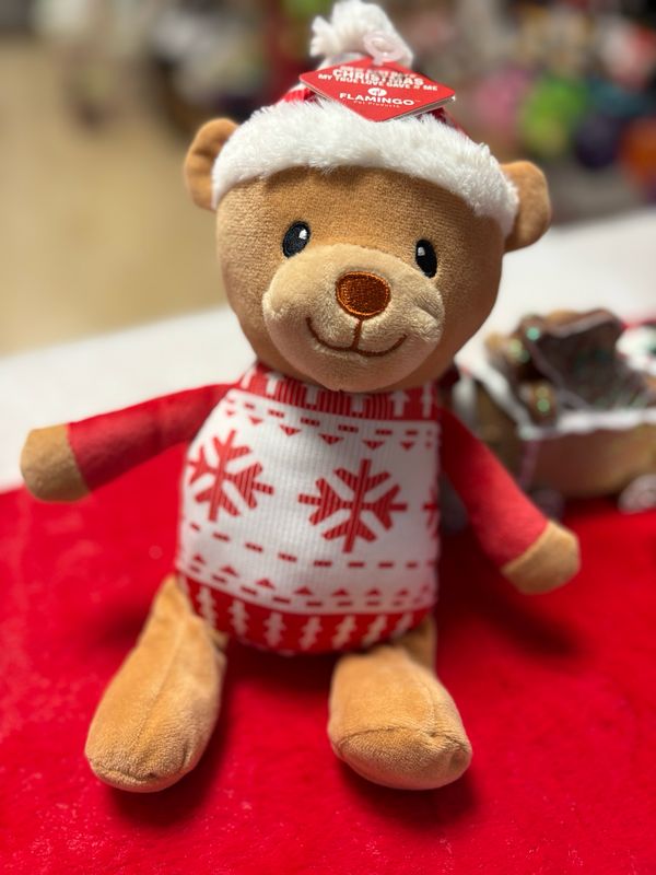 - Design festif : Habillé d'un pull de Noël rouge et blanc avec des motifs traditionnels, cet ours incarne parfaitement l'esprit des fêtes.