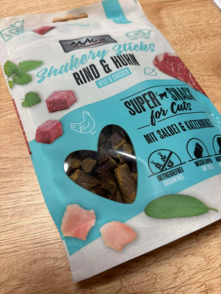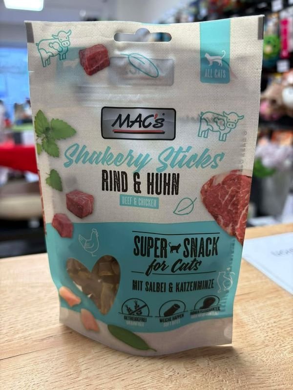 Les MAC's CAT Shakery Sticks sont un excellent snack pour les chats gourmands et sont idéaux pour le clicker ou comme friandise entre les repas. Exempts de céréales, ils conviennent également aux félins souffrant d'intolérance.