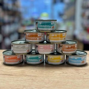 Filets de viande ou de poisson effilochés à la main, servis soit dans un bouillon naturel (pour l'hydratation), soit dans une gelée (pour la texture et la gourmandise) en format 85gr. Aliment complet pour chats qui contient des vitamines, minéraux et de la taurine essentiels à la santé quotidienne de votre chat. Thon et crevettes...